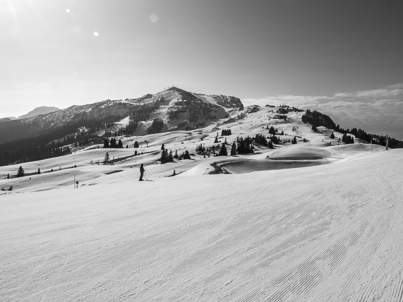 Kein Lust auf Ski tragen, Bruchharsch, Sumpfdurchquerungen, Krummholzgefechte und ruppige Acker, daher wieder am Pistenrand zum Standardziel der Saison…
