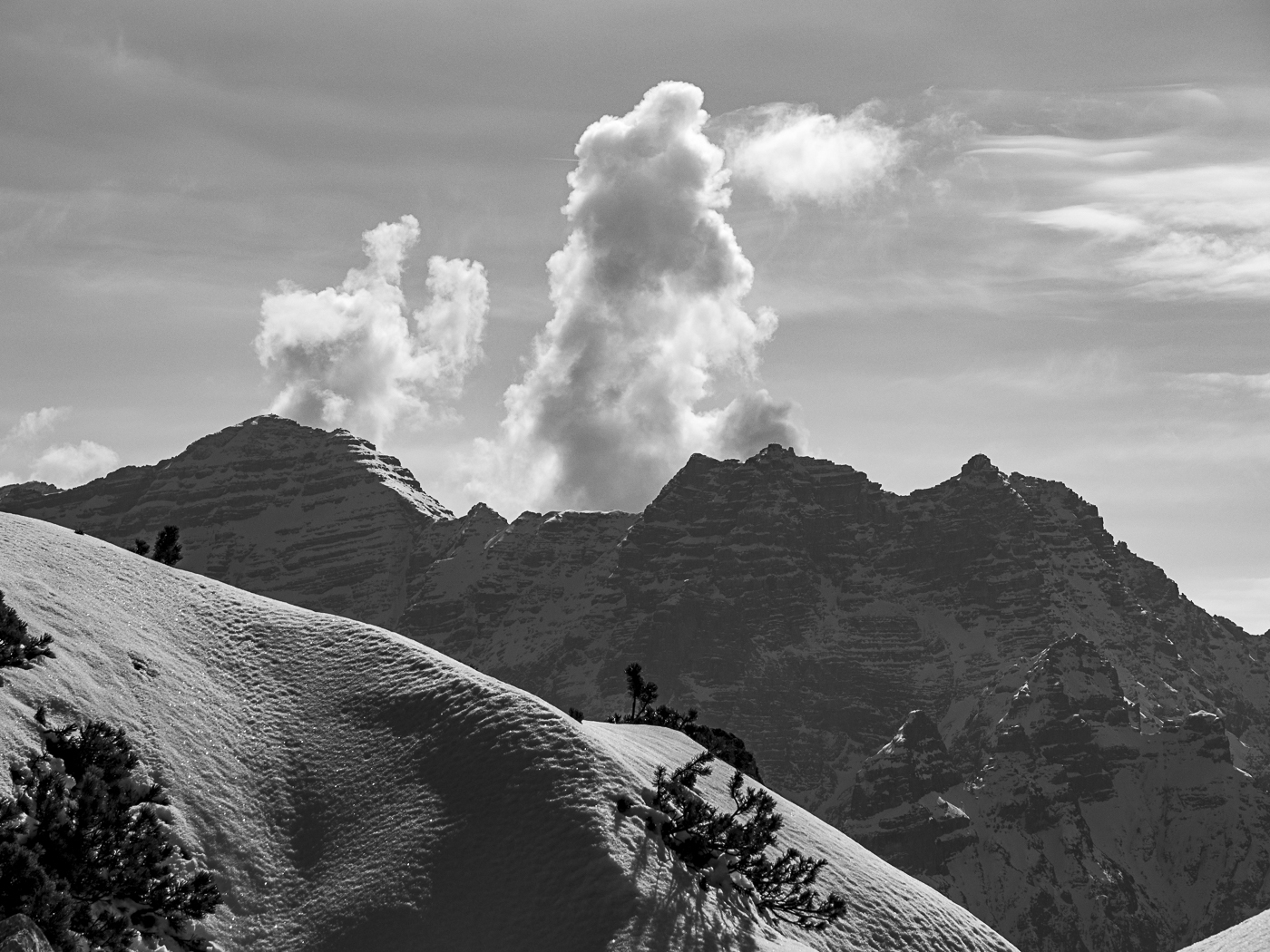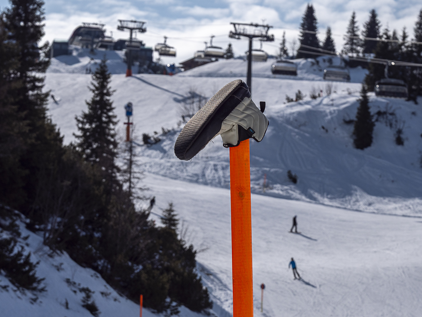 Da ich letzte Woche aber meine Handschuhe in der Winklmoos-Gondel liegengelassen habe, sie aber überraschenderweise den Weg in die Sammelbox an der Talstation gefunden haben, galt es heute, diese erst einmal abzuholen. Und wenn man schonmal da ist… Heute sogar mit Ski bis zum Gipfel. Eine kurze aber maximal mühsame Wühlerei durch den grundlosen Triebschnee im Latschendschungel.