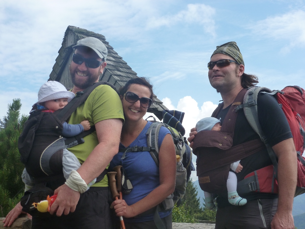 Gemütliche Wanderung von Schleching/Mühlau zur Oberauer Brunstalm. Die erste gemeinsame Tour mit dem kleinen, knapp zweimontigen, Aaron.