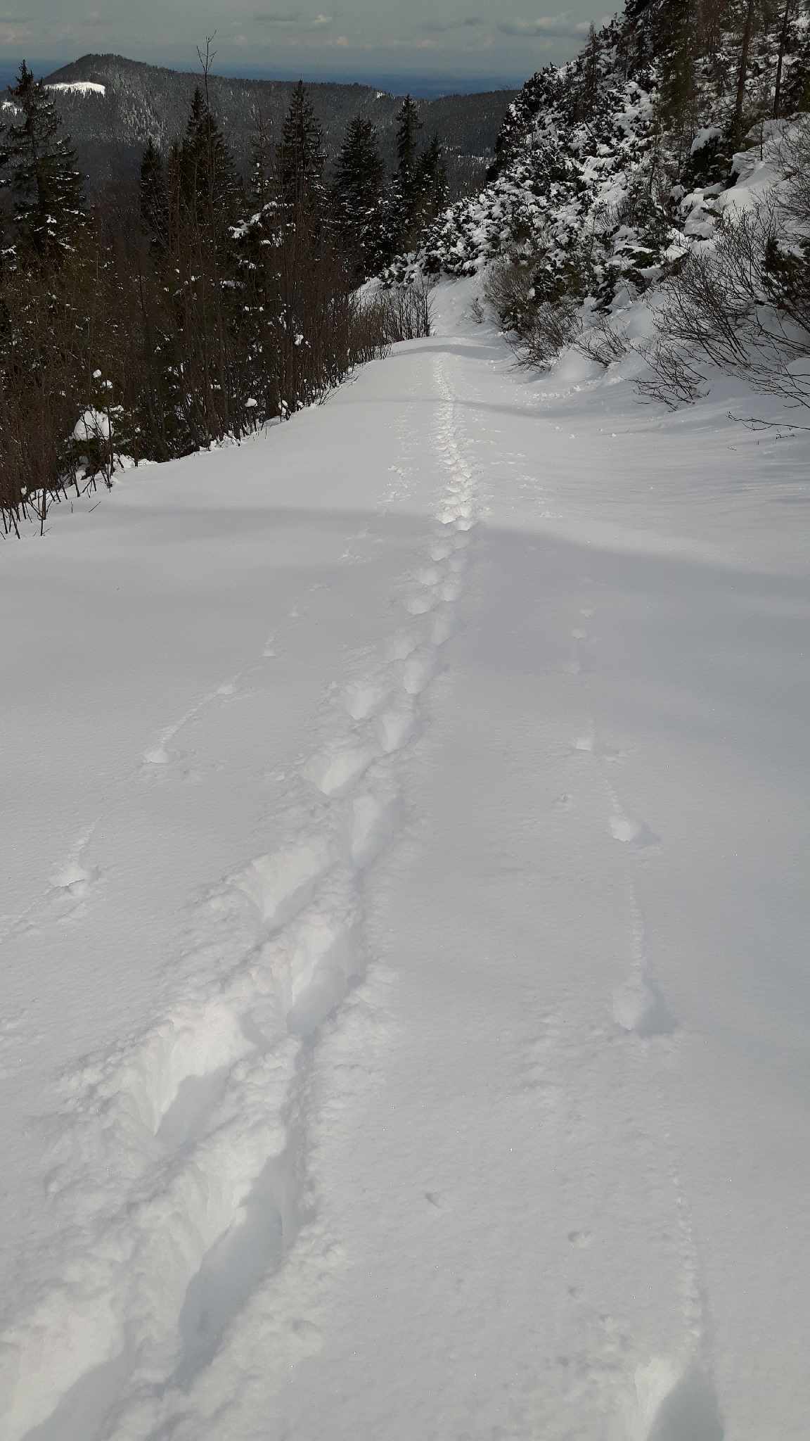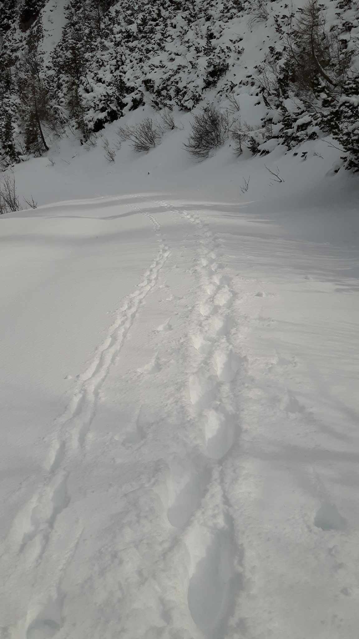 Puhhh, äußerst anstrengende Erkundungstour Richtung Streicher, der heute aufgrund der Neuschneemengen leider außer Reichweite war. Es hat tatsächlich ordentlich geschneit! Am Endpunkt dürfte es knapp ein halber Meter gewesen sein…Ski wären heute tatsächlich das geeignete Sportgerät gewesen.