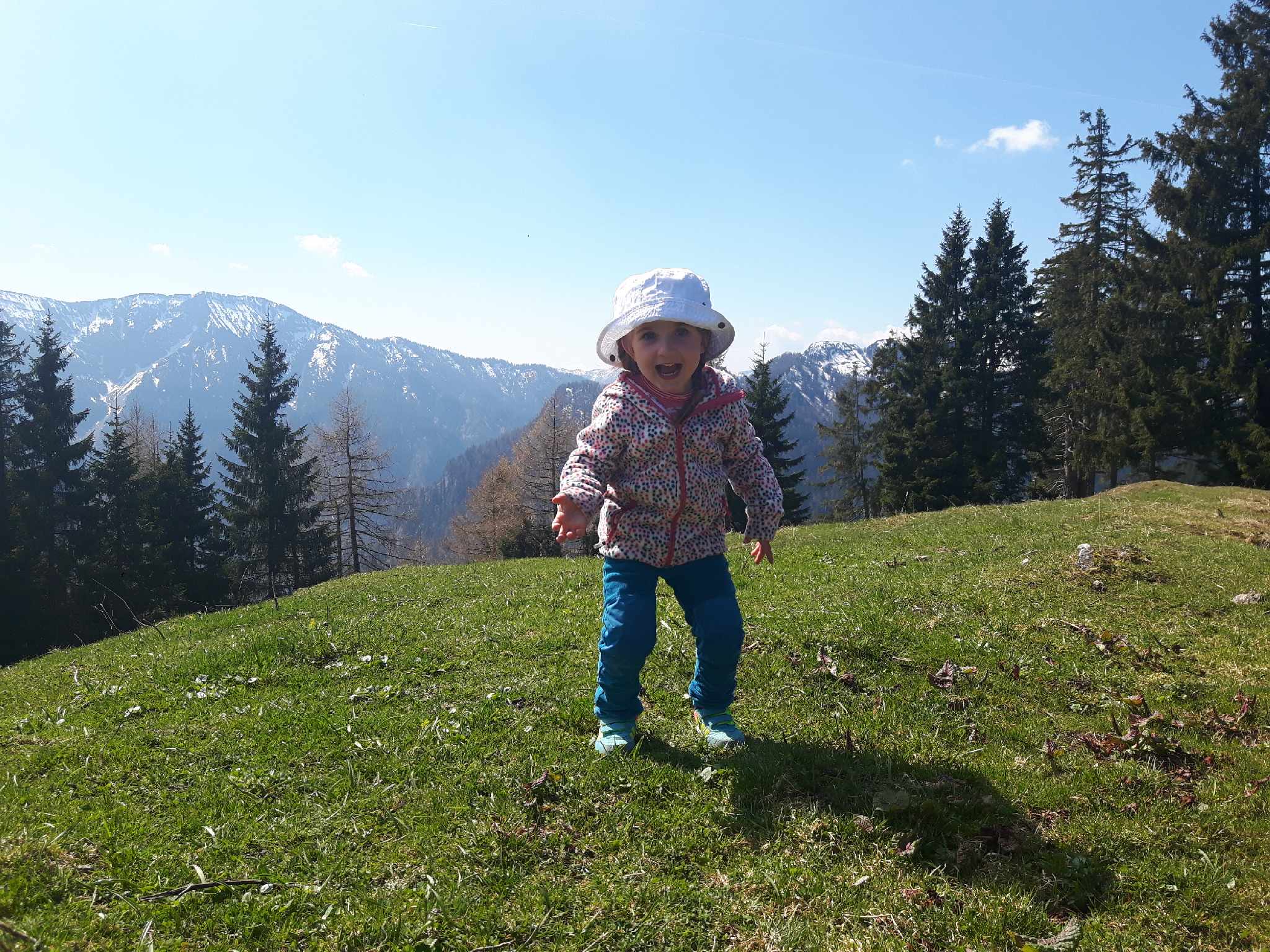 Unternberg Bergwachthütte 1354 m 9. April 2017 Tour 35/17 Von der Raffner Alm zunächst entlang der Forststraße, dann über den schönen Waldsteig zur von uns im Sommer nur selten besuchten Bergwachthütte 🙂 Wetter: sonnig, aber windig Höhendifferenz: ~450 hm dabei: Jona, Maria