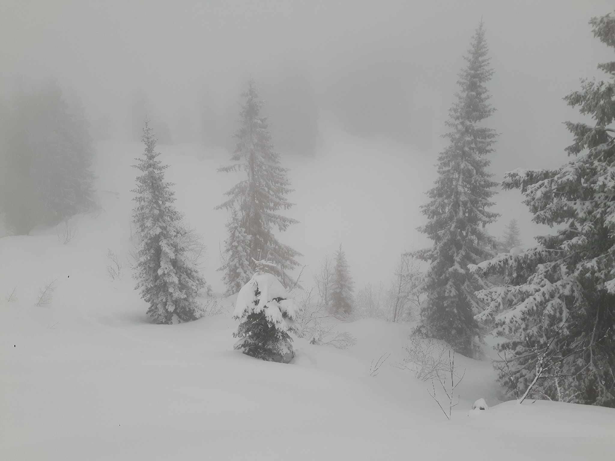 Vom Seegatterl aus sollte es heute eigentlich zum Dürrnbachhorn gehen. Da die Orientierung aufgrund der schlechten Sichtverhältnisse etwas schwierig und die Spurarbeit im feuchten, tiefen und später anstollenden Schnee recht mühsam und zeitaufwändig war, kürzte ich die Tour etwas ab und besuchte nur die Lembergschneid.