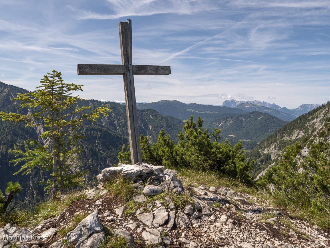 Schlösselschneid 1416 m 8. August 2023 42/23 Eigentlich sollte es auf die Hörndlwand gehen. Aber nachdem am Parkplatz schon relativ viele Autos standen, entschied ich mich kurzfristig für die einsame Schlösselschneid. Wetter: sonnig und angenehm kühl Höhendifferenz: ~750hm