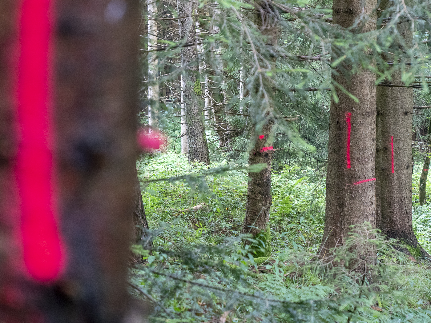 Der Zinnkopf hat sich seit meinem letzten Besuch ziemlich verändert: die sumpfigsten Stellen des oberen Steiges wurden aufgekiest, kurz vor dem Gipfel wurde eine neue Forstautobahn in den Berg gefräst und die imposante Gipfelfichte wurde ordentlich gestutzt…krass!