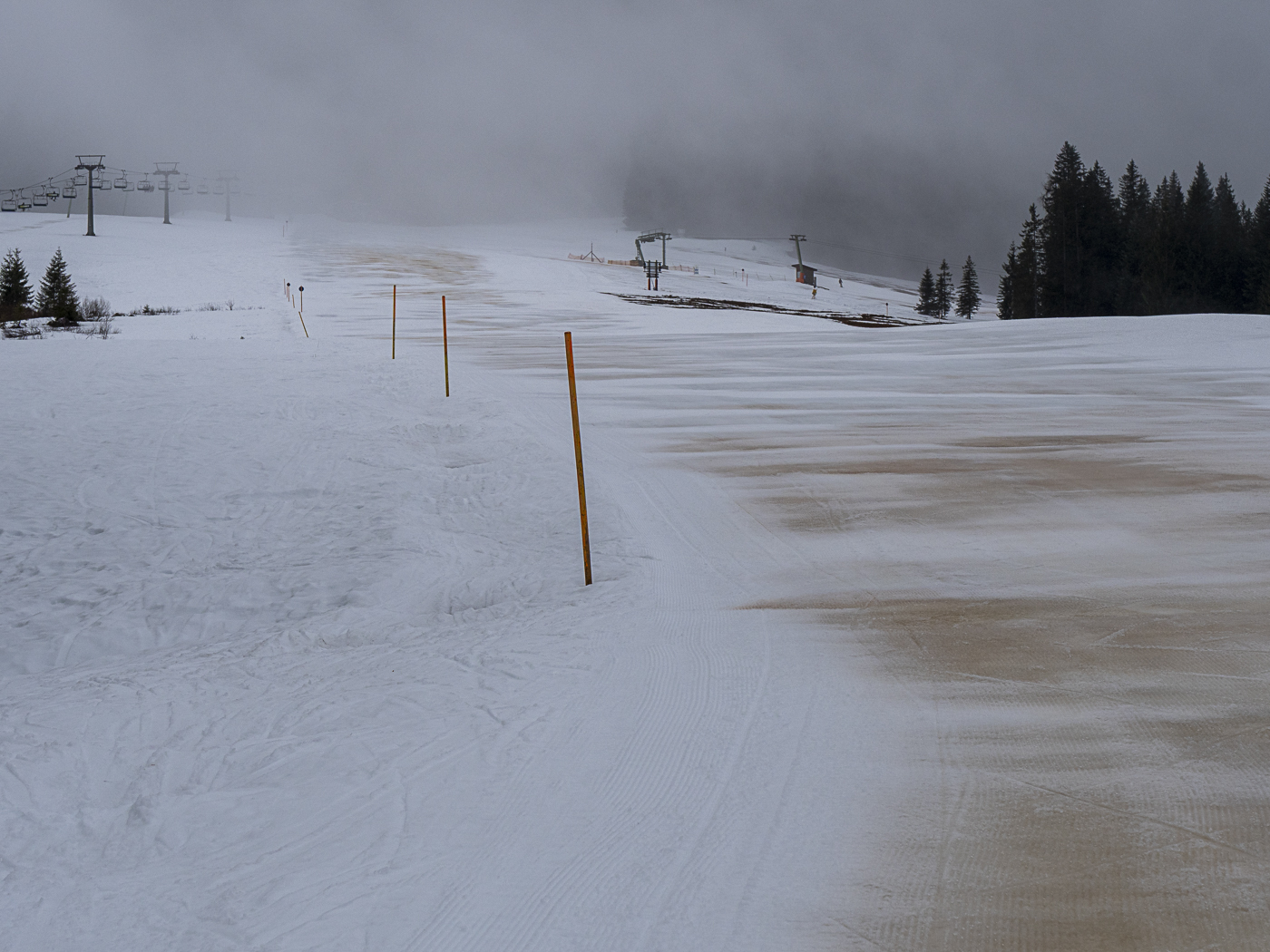 So-Lange-Es-Noch-Geht-Tour bei widrigen Bedingungen. Der Regen geht erst oberhalb von 1600 m in Graupel und Schnee über. Beim Aufstieg stollt der Neuschnee an, bei der Abfahrt saugt der nasse Schnee förmlich an den Ski und bremst gewaltig. Vielleicht die letzte Skitour der Saison?!?