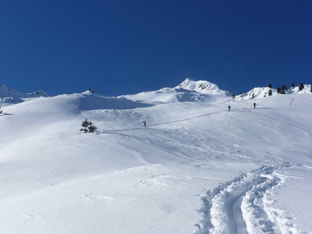 Heute ging’s noch schnell vor dem prognostizierten Temperaturanstieg von Kohlstatt auf den Hochfelln, der sich in überraschend guter Form präsentierte. Unten liegt gerade noch ausreichend Altschnee, überzogen von einigen Zentimetern nassen Neuschnee, oben gab’s ca. 15 cm frischen Pulverschnee auf der vom Wochenende noch bestens präparierten Piste.